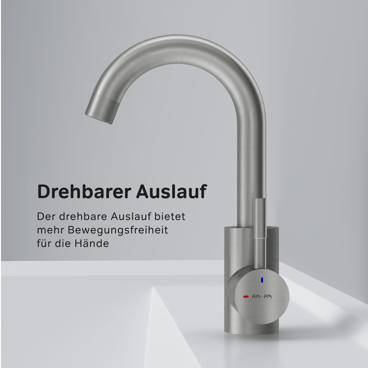 Le bec pivotant rend ce mitigeur particulièrement pratique et fonctionnel–idéal pour les lavabos de toutes tailles. Il convient non seulement à la salle de bain, mais aussi aux petits éviers de cuisine.