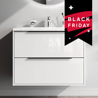 MNA-FHX0802WGSP-WCC0802WG Meuble sous-vasque avec vasque, livré en kit, 80 cm, 2 tiroirs, blanc brillant