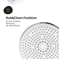 Dank des einzigartigen Düsendesigns wird das Wasser gleichmäßig über die gesamte Brause verteilt – selbst bei niedrigem Wasserdruck.