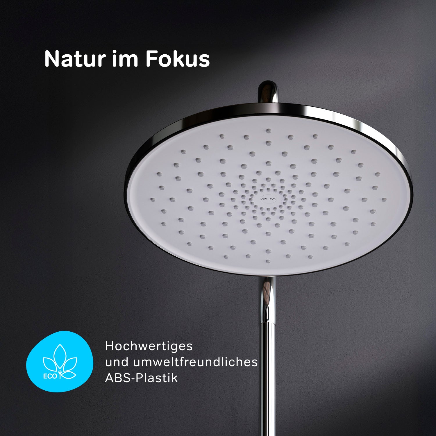 Der Overhead-Duschkopf bietet einen Strahlmodus mit einem vergrößerten Durchmesser von 250 mm.