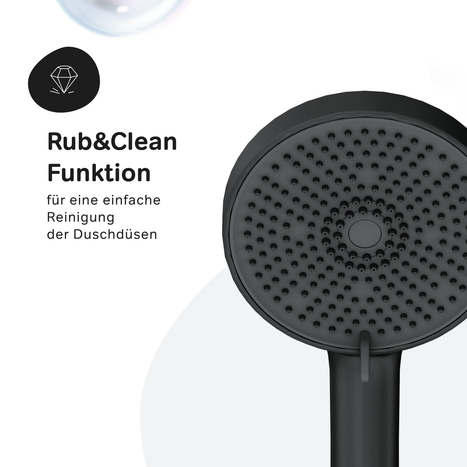 • DUSCHE: Die Handbrause mit 5 Strahlarten (Spray, EnerJet, Spray+Massage, Bubble, Spray+Bubble) besteht aus hochwertigem und umweltfreundlichem ABS-Kunststoff, der kratzfest und leicht zu reinigen ist.