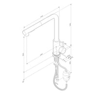 Der Mischer ist mit einem ausziehbaren, flexiblen Auslauf ausgestattet, der das Spülen der Spüle, das Befüllen großer Behälter sowie das Waschen von Obst und Gemüse besonders einfach macht. Je nach Bedarf lassen sich mühelos der normale Wasserstrahl und der Sprühmodus („Dusche“) umschalten.