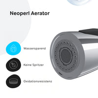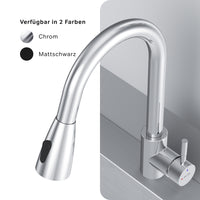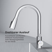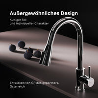 Die Armatur ist mit einem flexiblen, ausziehbaren Auslauf ausgestattet, der Aufgaben wie das Reinigen des Spülbeckens, das Befüllen großer Gefäße sowie das Waschen von Obst und Gemüse besonders erleichtert. Je nach Bedarf können Sie mühelos zwischen normalem Wasserstrahl und Brausemodus wechseln.