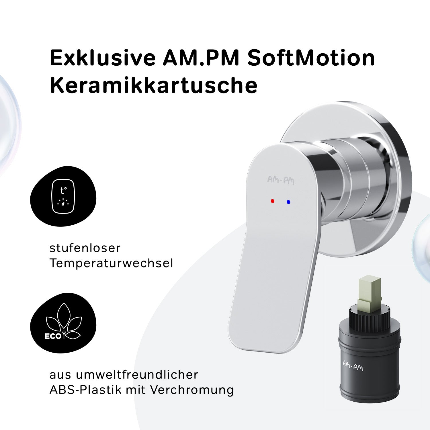 Die X-Joy Armatur ist mit einer 35 mm SoftMotion Keramikkartusche ausgestattet, die speziell für AM.PM entwickelt wurde. Diese Kartusche hilft bei der Temperaturregelung und hält auch Druckschwankungen stand.