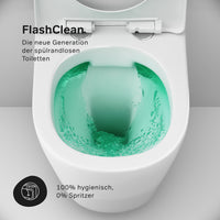 FlashClean – eine neue Generation randloser WCs, vollständig ohne Kunststoff: 100% Hygiene, 0% Spritzer.