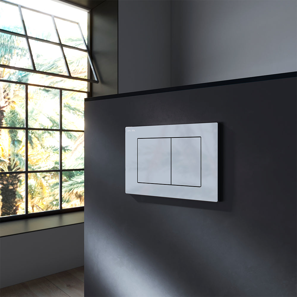 • BETÄTIGUNGSPLATTE: Betätigungsplatte ist mit zwei Spülmodi ausgestattet: 3l und 6l. Betätigungsplatte ist aus Kunststoff gefertigt. Maße- 240x160mm.. Kompatibel nur mit VORWANDELEMENT AM.PM.