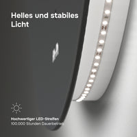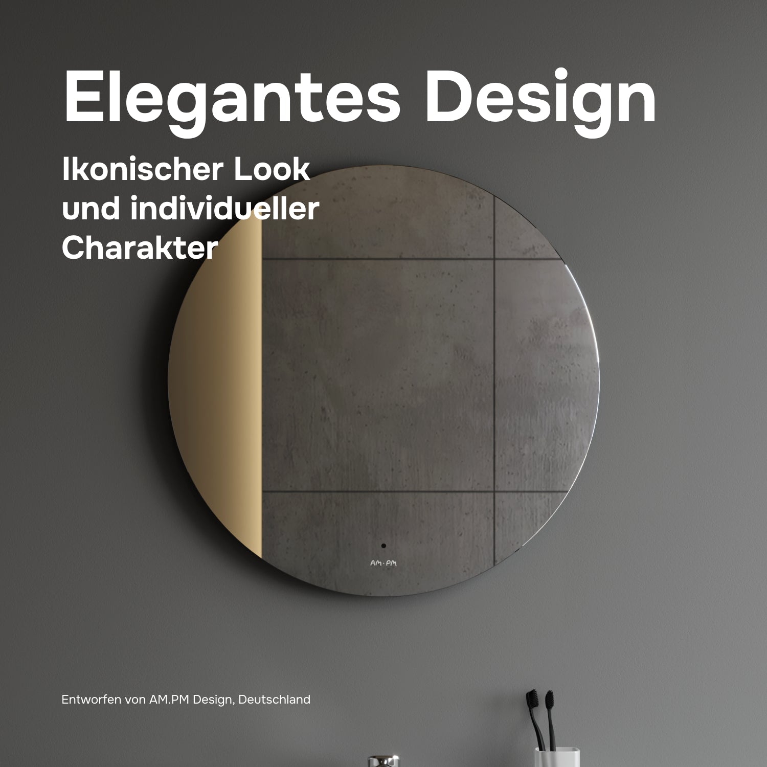 Der AM.PM Hit LED-Badezimmerspiegel 60 cm verbindet modernes Design mit praktischen Komfortfunktionen für den täglichen Einsatz im Bad. Die integrierte LED-Hintergrundbeleuchtung erzeugt einen eleganten schwebenden Effekt und sorgt für eine stilvolle Atmosphäre. Dank berührungslosem Touchless Sensor bleibt die Spiegeloberfläche frei von Fingerabdrücken, während die dimmbare Beleuchtung mit drei Farbtemperaturen für die passende Lichtstimmung bei jeder Situation sorgt. Die Anti-Beschlag-Funktion unterstützt jederzeit eine klare Sicht, auch nach dem Duschen. Hochwertiges AGC-Spiegelglas mit Eurokante steht zudem für klare Reflexion, Korrosionsbeständigkeit und sichere Nutzung im feuchten Badezimmer.