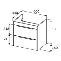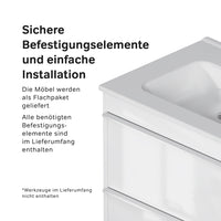 MTAX0602WG-C0602WG Waschtischunterschrank mit Waschbecken, als Flachpaket geliefert, 60 cm, 2 Schubladen